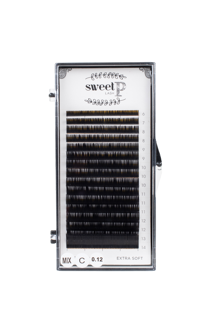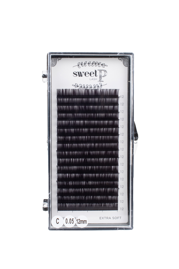 *If you are used to working with a coarse/stiff lash, it is recommended that when doing VOLUME sets with Sweet P lashes, you bump up a diameter.