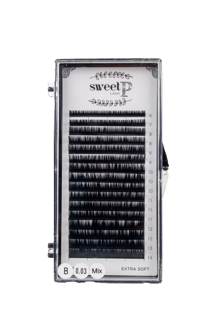 Sweet P lashes are an incredibly soft, ultra black, beautiful matte finish silk lash. Though incredibly soft, Sweet P lashes hold their curl no matter what your clients put them through! You will love working with these lashes, and your clients will LOVE the feel and look of them.