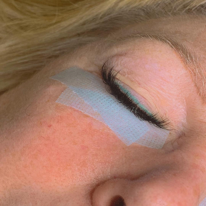 We call this tape, MIRACLE TAPE! It not only holds those pesky bottom lashes down through face scrunching, sneezing & client bathroom breaks..... it's actually very gentle to remove. Even your clients with very thin & sensitive skin won't mind this tape.